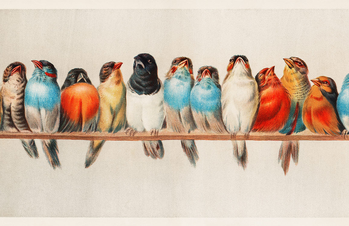Bring nature's serenity indoors with our vibrant bird-themed wallpaper, featuring a charming row of perched birds in a multitude of hues. This wallpaper is perfect for adding a touch of whimsy and a splash of color to any room.