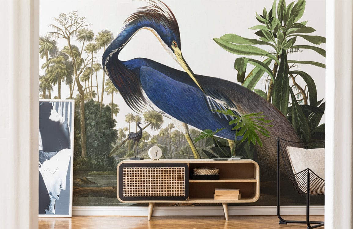 Enhance your space with our striking Tropical Bird Jungle Scene Wallpaper, a design that merges the vibrancy of the jungle with the elegance of exotic birds. Perfect for creating an accent wall that commands attention.