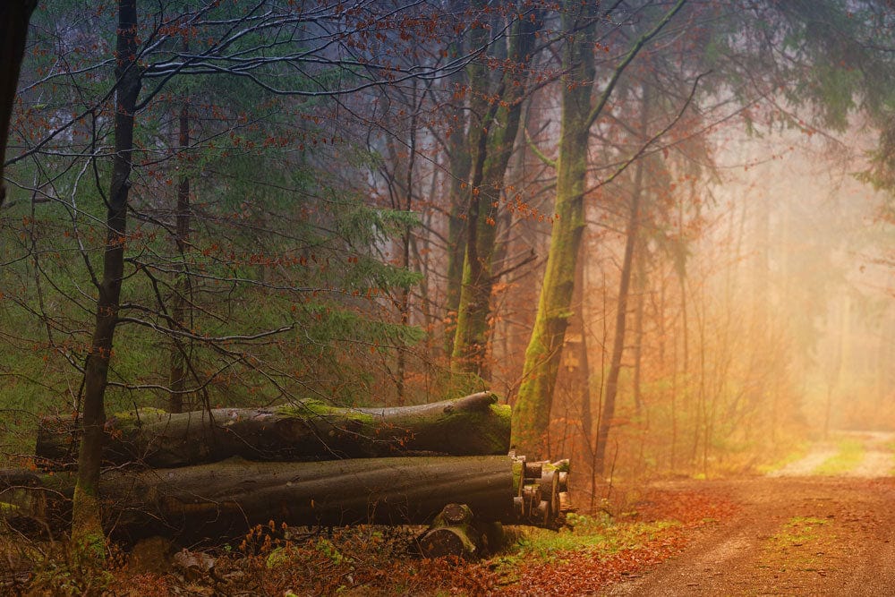 Transform your space with our Mystic Forest Trail Landscape Wallpaper. This enchanting design brings the serenity of nature indoors, perfect for creating a tranquil retreat in your home. The warm earth tones and soft sunshine filtering through the trees evoke a sense of peace and calm.