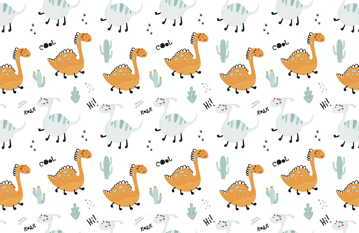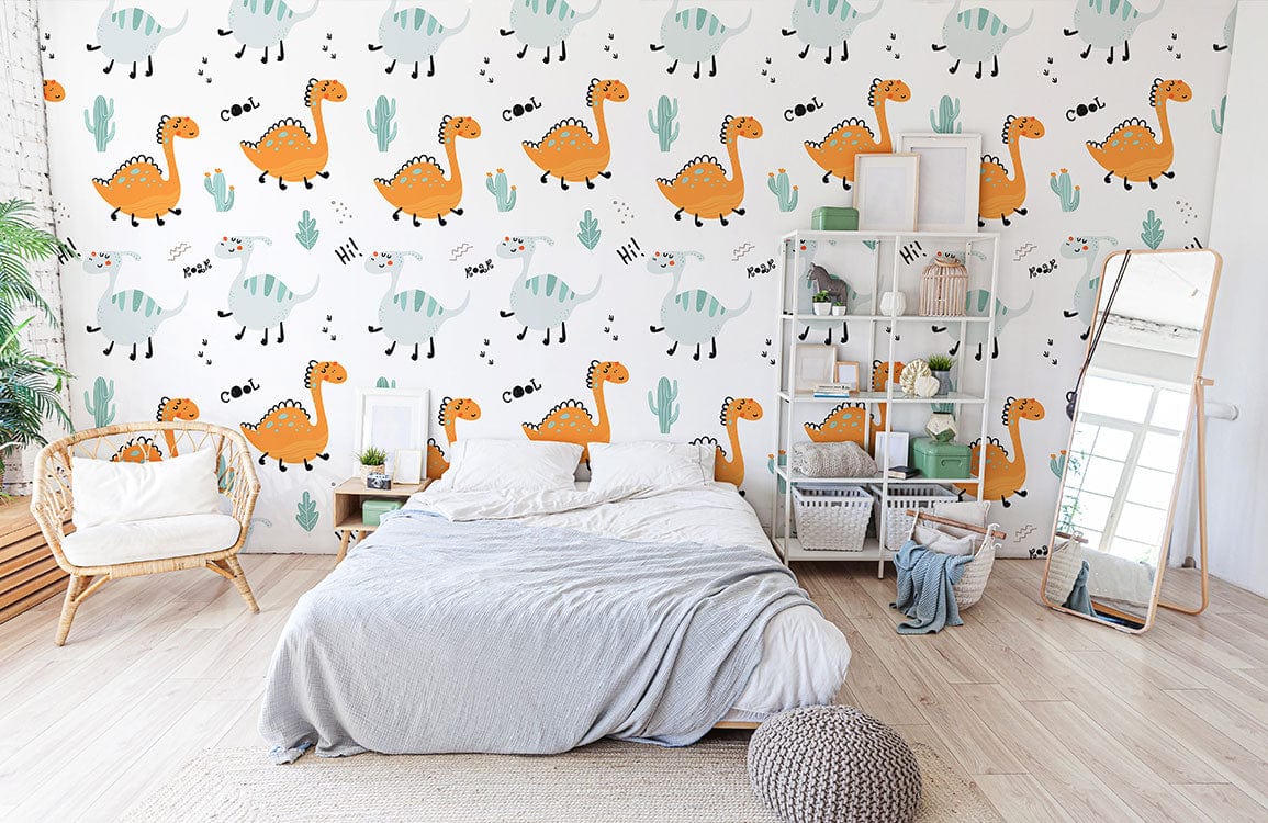 Transform your child's room into a playful prehistoric paradise with our Charming Dinosaur Nursery Wallpaper. Featuring friendly dinosaurs and stylish cacti, this wallpaper adds a touch of whimsy and color to any nursery or playroom.
