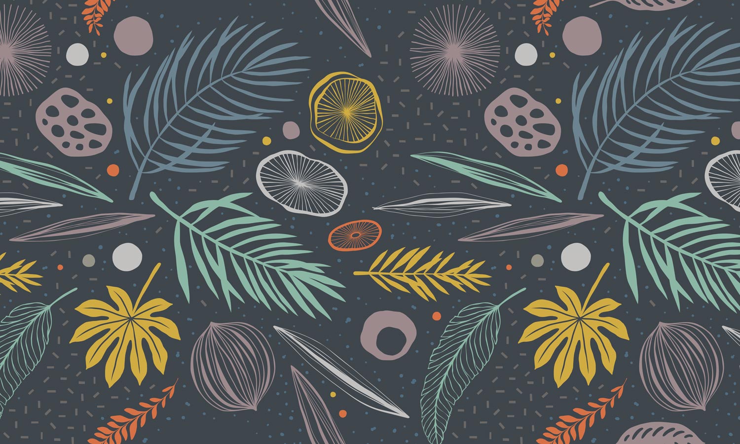 Transform your space with our Tropical Botanical Dark Blue Wallpaper. This vibrant and lively design features lush green foliage and citrus fruit motifs on a deep blue background, perfect for creating an energizing atmosphere in any room.