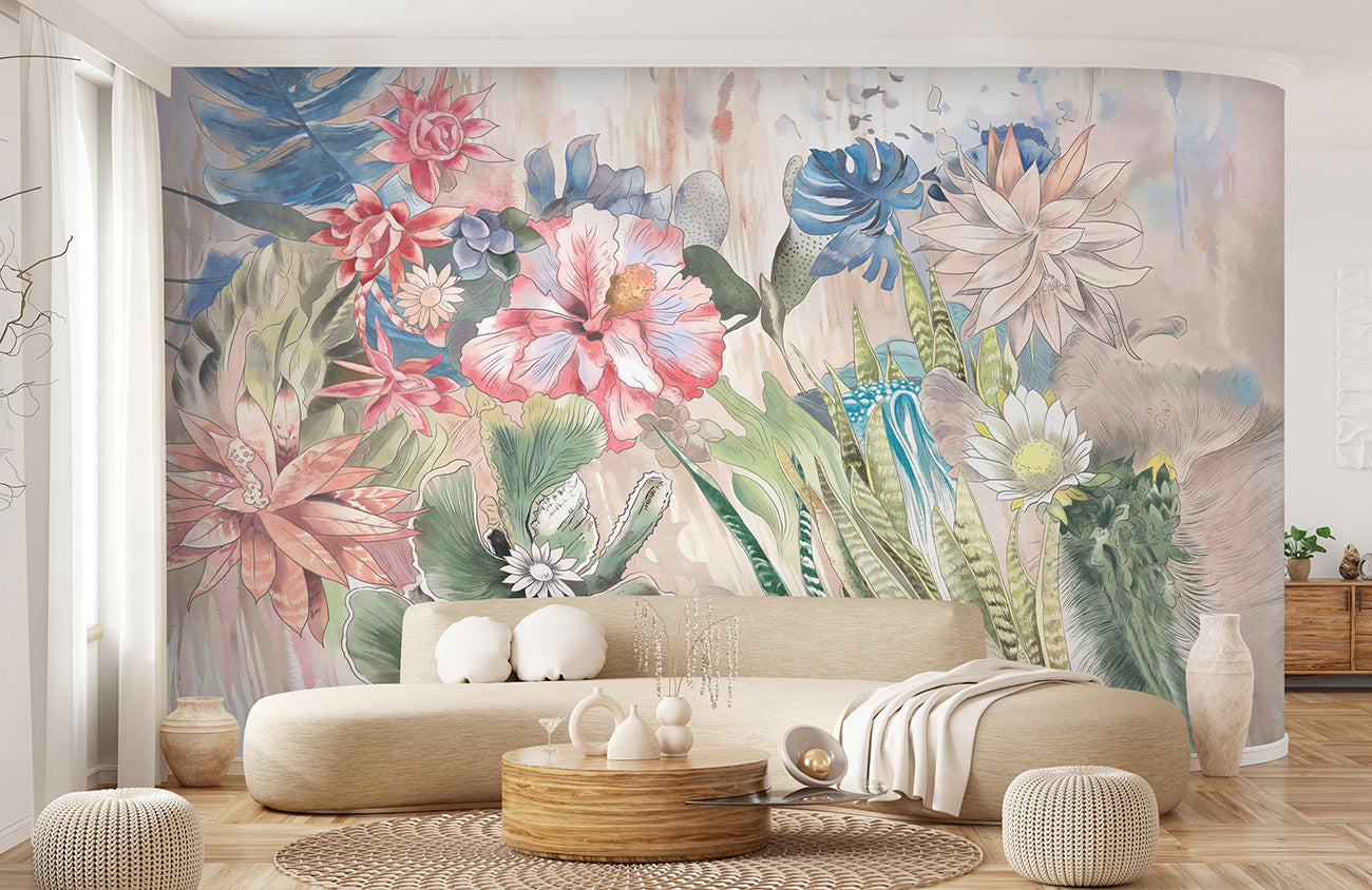 Elevate your space with our Watercolor Botanical Floral Wallpaper, featuring a delicate array of pastel-hued florals and soft greenery. This wallpaper brings a touch of nature's serenity to any room, creating a tranquil and inviting atmosphere.