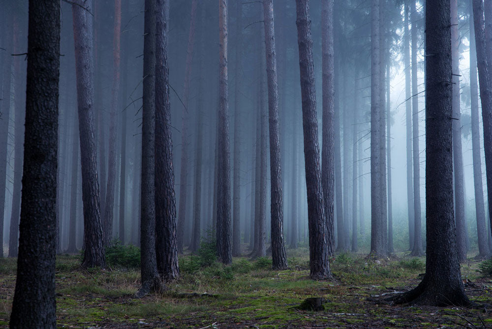 Transform your space into an enchanting woodland with our Mystical Forest Mist Wallpaper, featuring serene blue-grey hues and soft fog among towering trees. Perfect for creating a tranquil, nature-inspired retreat in your home.