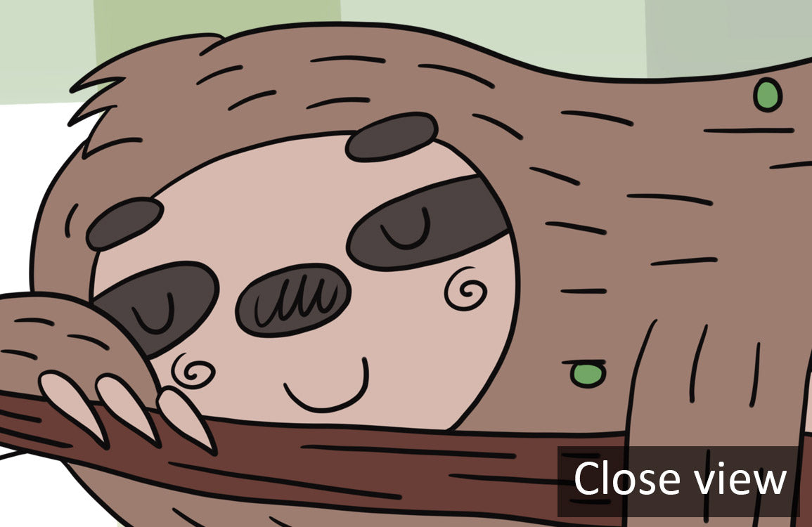 Bring a touch of whimsy to your space with our Cute Playful Sloth Pattern Wallpaper, perfect for adding a cheerful vibe. The charming sloth illustrations set against a soft green checkered background create a fun, lively atmosphere in any room.