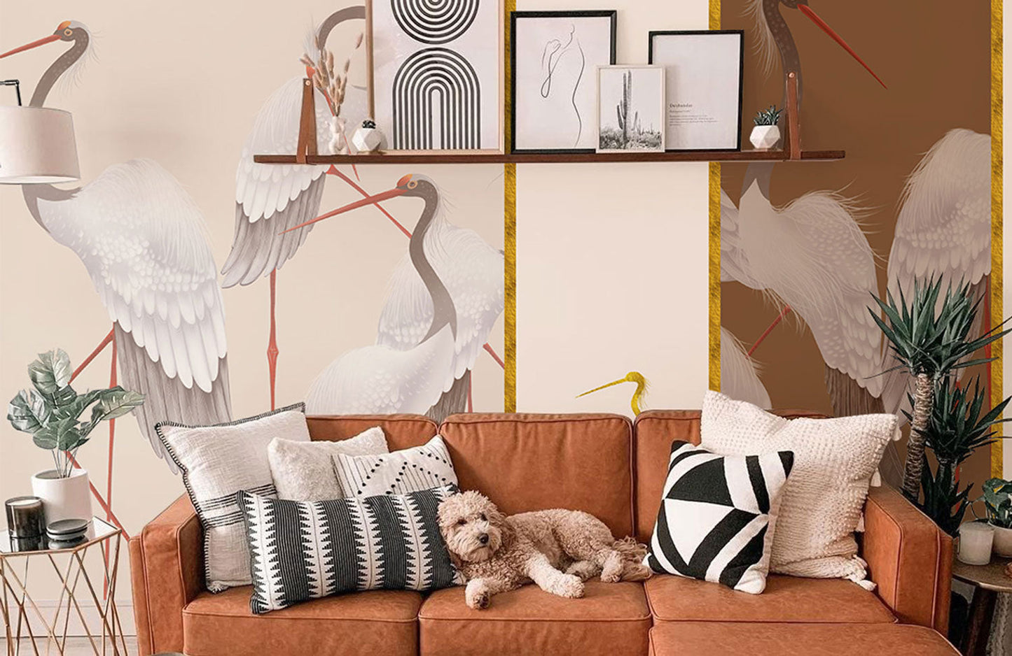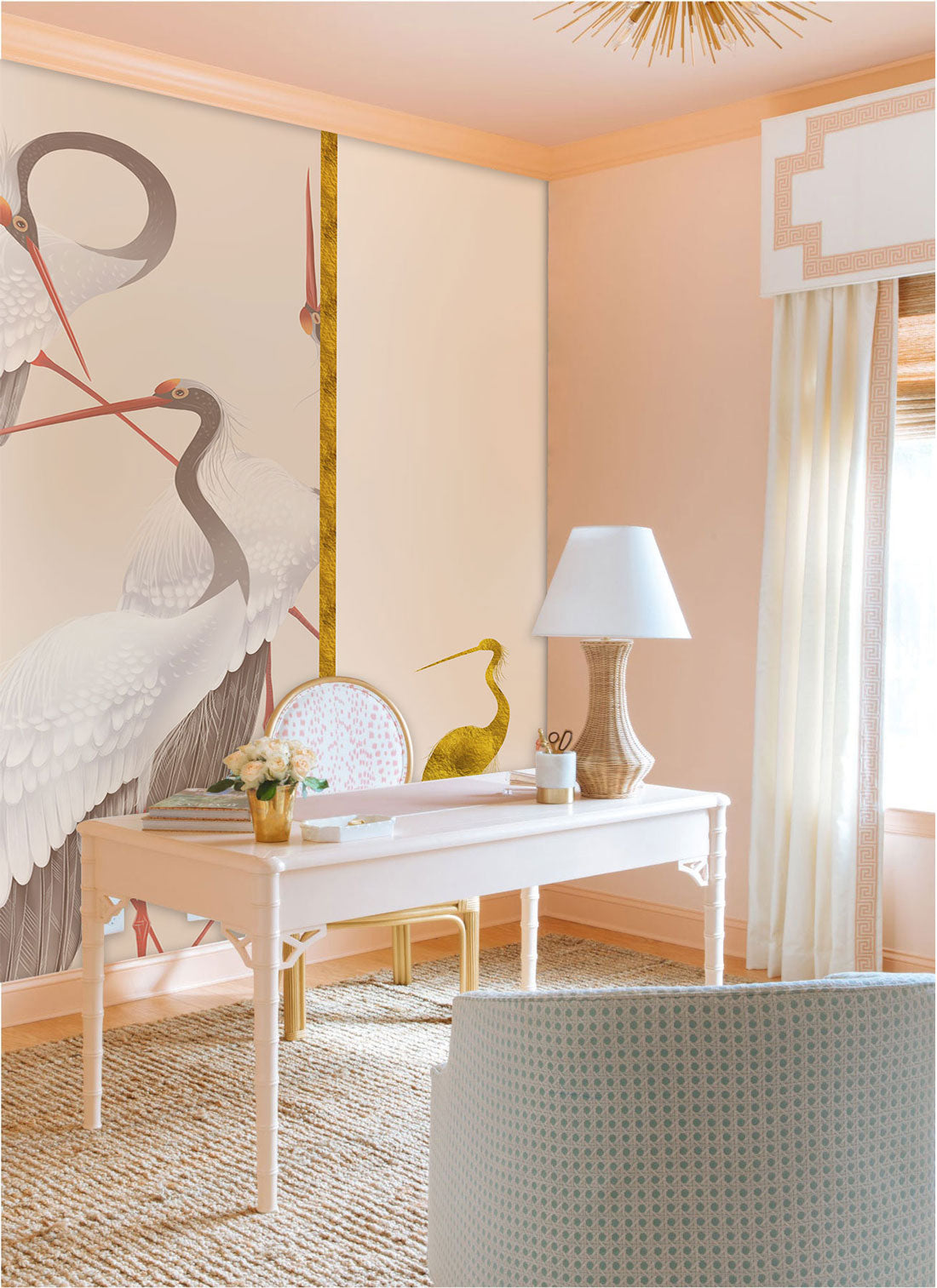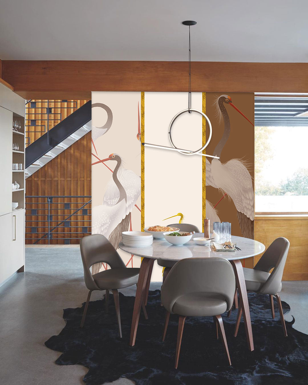 Adorn your walls with sophistication with our Elegant Gold Crane Bird Wallpaper. Embrace the timeless beauty of the graceful crane, accented by a luxurious gold backdrop, perfect for creating a serene and elegant atmosphere in any room.