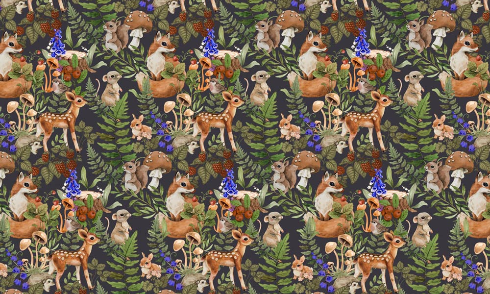 Bring whimsy to your space with our Enchanted Forest Animal Wallpaper, featuring a rich tapestry of woodland creatures amidst lush flora. Perfect for adding a touch of nature's magic to any room, this durable wallpaper creates an inviting and playful atmosphere.