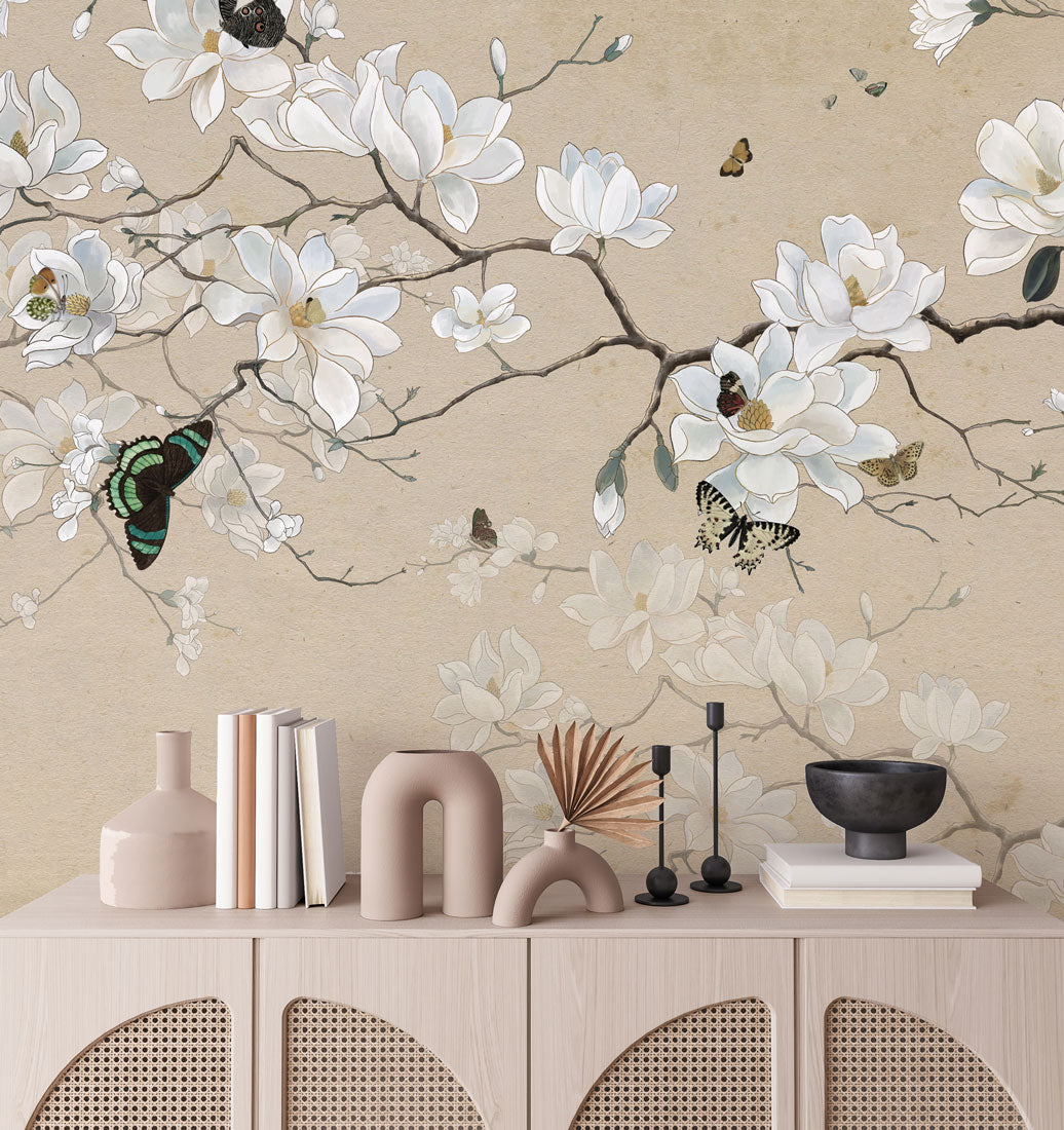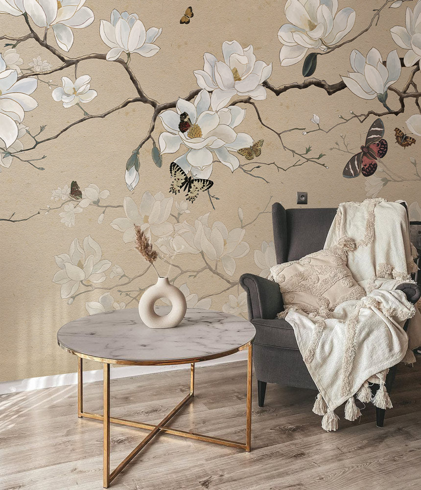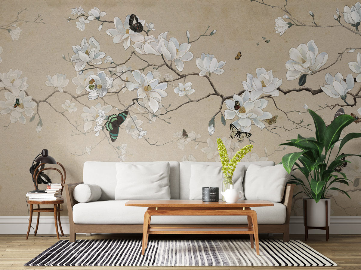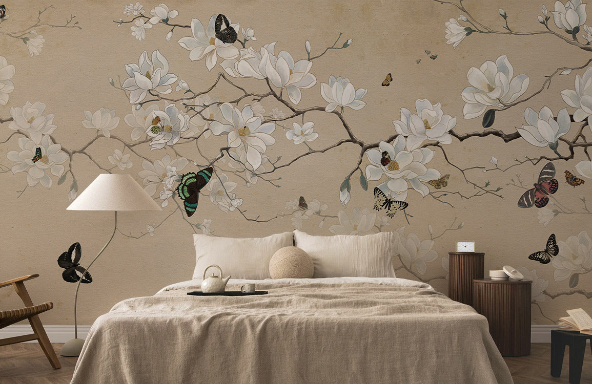 Delicate Magnolia Blossom Mural Wallpaper