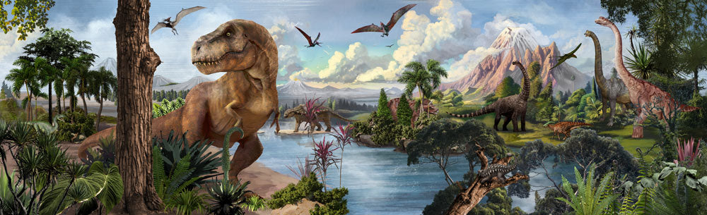 Transform your space with our Dinosaur Adventure Prehistoric Landscape Wallpaper. This captivating design, featuring lifelike dinosaurs and lush landscapes, brings the Mesozoic era to any room. Perfect for dinosaur enthusiasts and imaginative decors.