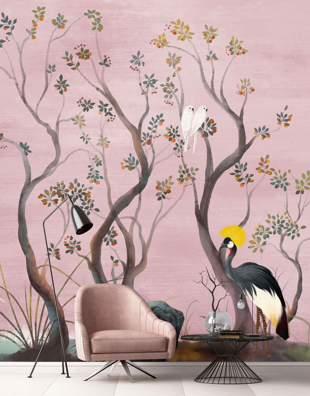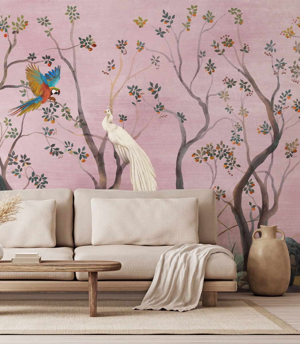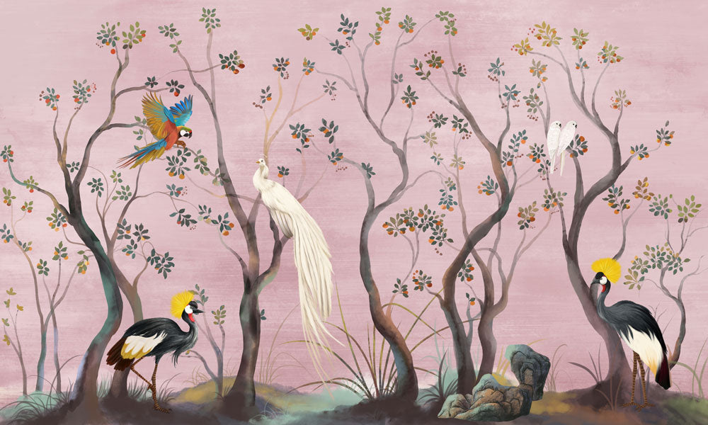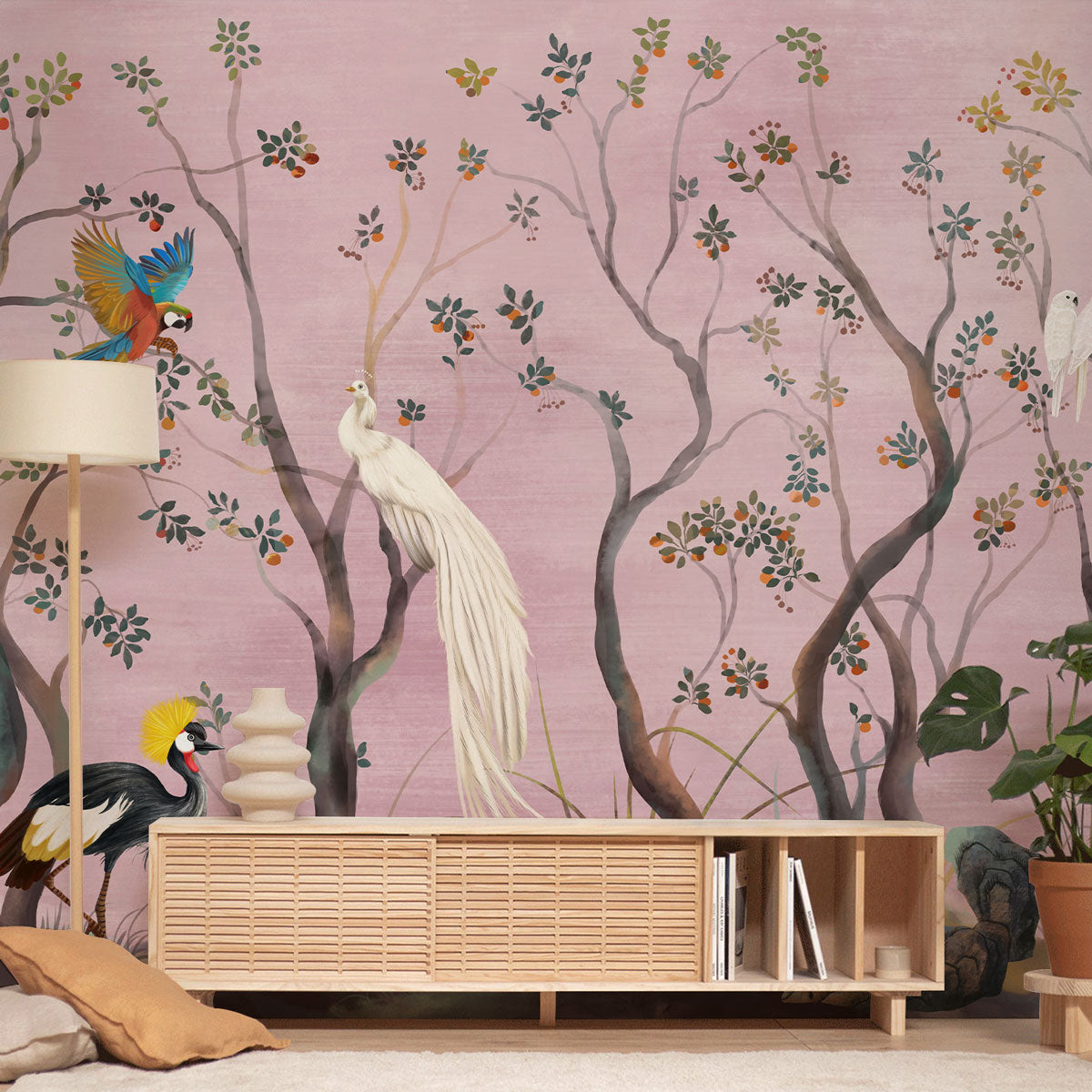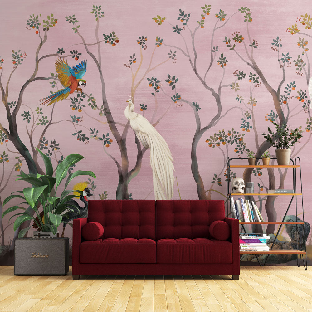 Embrace tranquility with our Exquisite Tropical Birds and Trees Mural Wallpaper, perfect for creating a serene retreat. Ideal for bedrooms or living areas, this wallpaper features a beautiful, soothing landscape with subtle color transitions that evoke nature's calming essence.