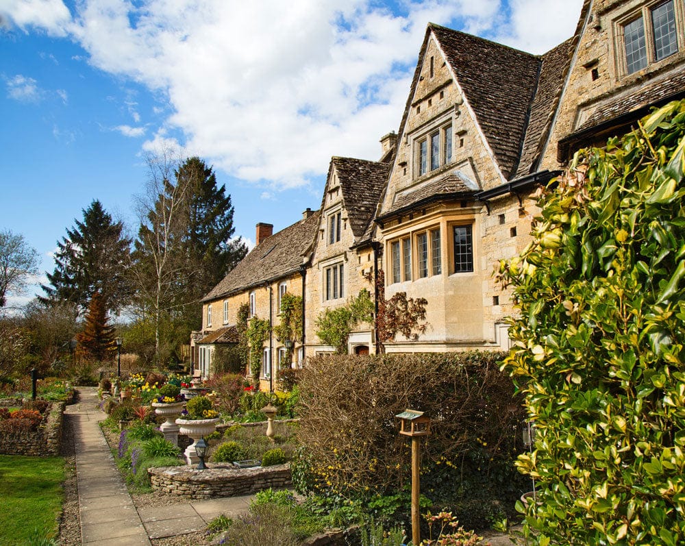 Embrace the essence of the English countryside with our Cotswold Stone House Garden Wallpaper. This beautiful mural captures the quaint charm of a traditional Cotswold stone house, enhanced by lush garden greenery under a serene blue sky.