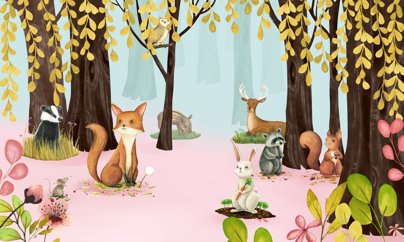 Bring a touch of whimsy to your child's space with our Enchanted Forest Animal Wallpaper. This charming design features friendly woodland creatures amongst golden autumnal trees, creating a magical backdrop for play and rest. Suitable for bedroom and nursery interiors.