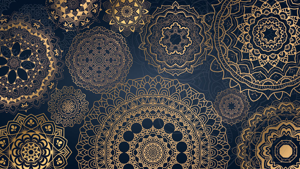 Elevate your bedroom or living room with this luxurious golden mandala wallpaper, featuring intricate patterns that create a sophisticated and serene ambiance. Ideal for adding a touch of elegance to any space.