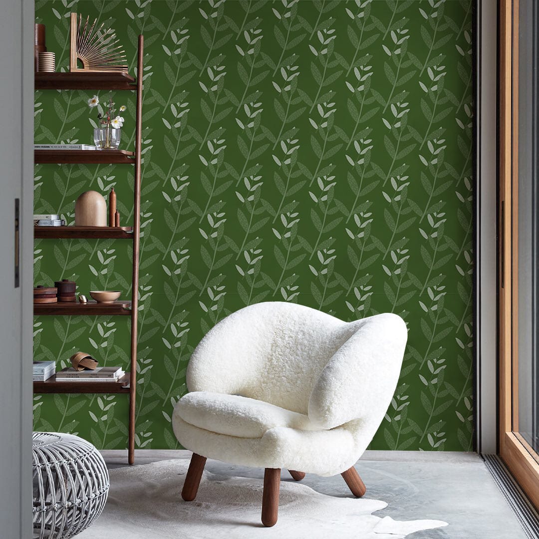 Embrace nature's tranquility with our Emerald Green Leaf Pattern Wallpaper. Crafted for a refreshing and serene touch, this wallpaper enhances any space with its vibrant green hues and delicate leaf designs. Ideal for creating a peaceful sanctuary in your home.