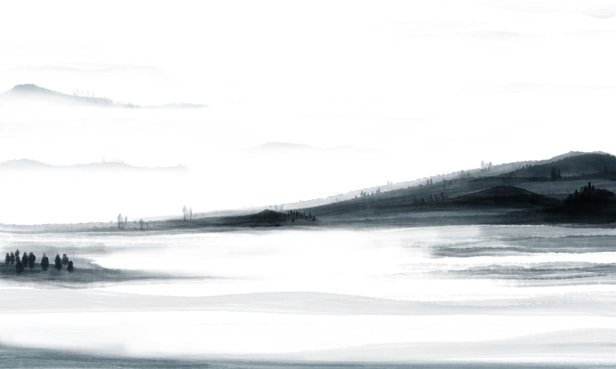 Elevate your space with our Monochrome Watercolor Landscape Wallpaper, featuring serene hills and misty horizons. This subtle piece blends artistic charm with minimalist design, perfect for creating a peaceful backdrop in any room.