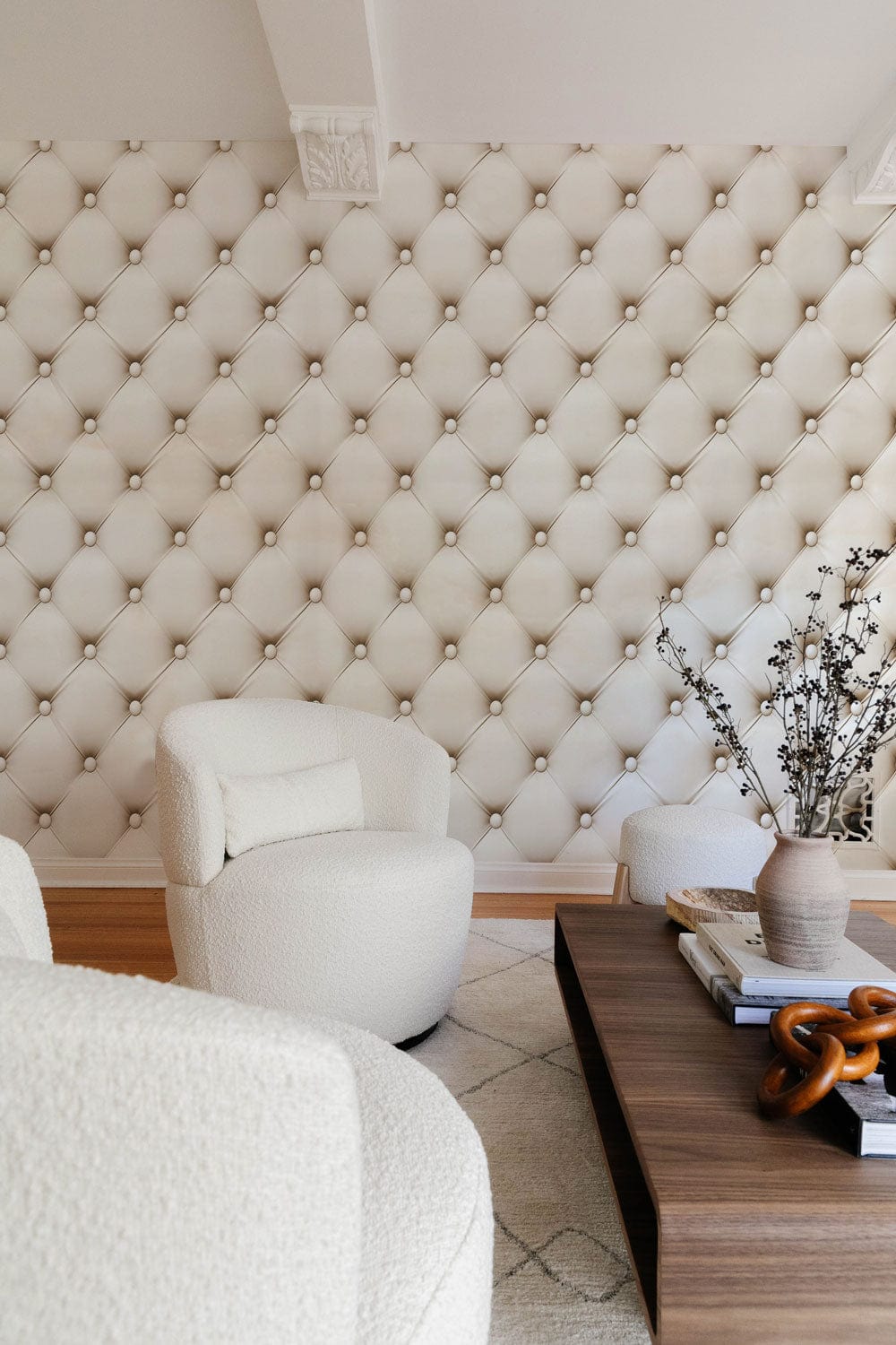 Indulge in the opulence of our Luxury Beige Tufted Leather Wallpaper. Its plush, diamond-patterned surface adds a touch of sophisticated warmth and texture to any space, enhancing the aura of luxury. Ideal for creating a sumptuous backdrop in residential or commercial settings.