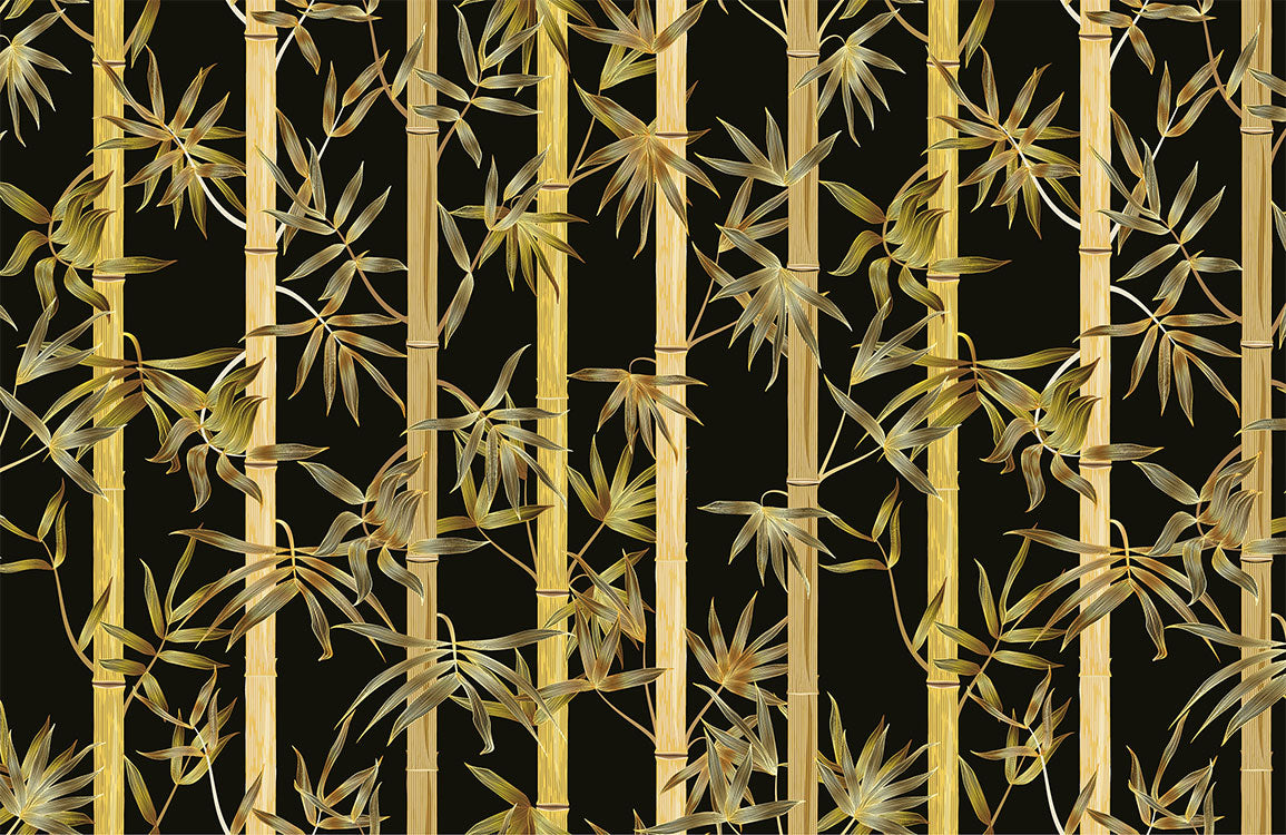 Infuse your space with the grandeur of a golden bamboo forest through our luxurious wallpaper. Its reflective gold tones and detailed bamboo silhouettes add a sophisticated, exotic touch to any interior.