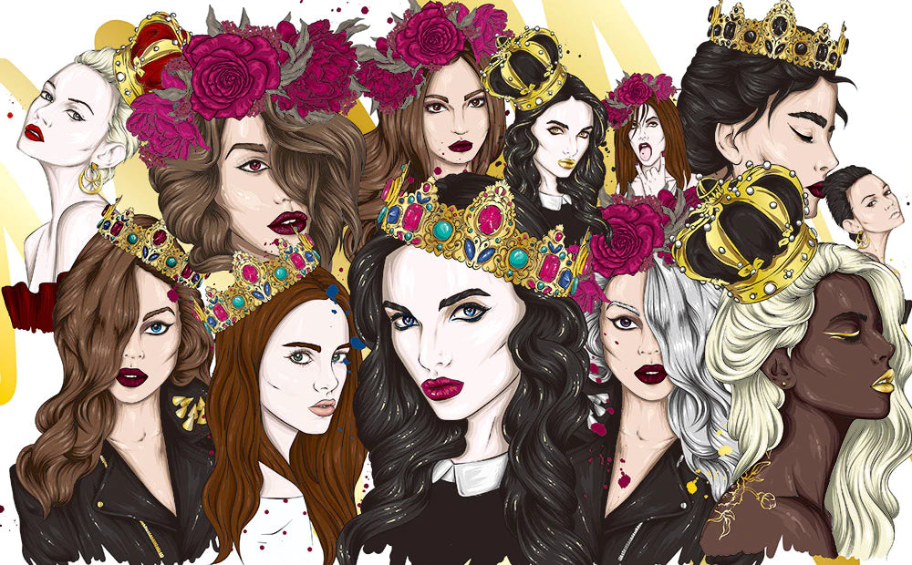 Elevate your space with our Regal Queen Portraits Art Wallpaper, featuring stunning depictions of diverse queens adorned with ornate crowns against an abstract backdrop. Perfect for creating a bold statement wall with a touch of royal elegance.