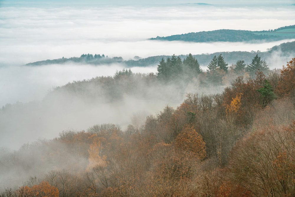 Immerse your space in the serene beauty of autumn with our Misty Forest wallpaper. Perfect for creating a tranquil atmosphere, this wallpaper features subtle orange and green hues that harmonize with the foggy forest landscape, providing a natural, calming backdrop for any room.