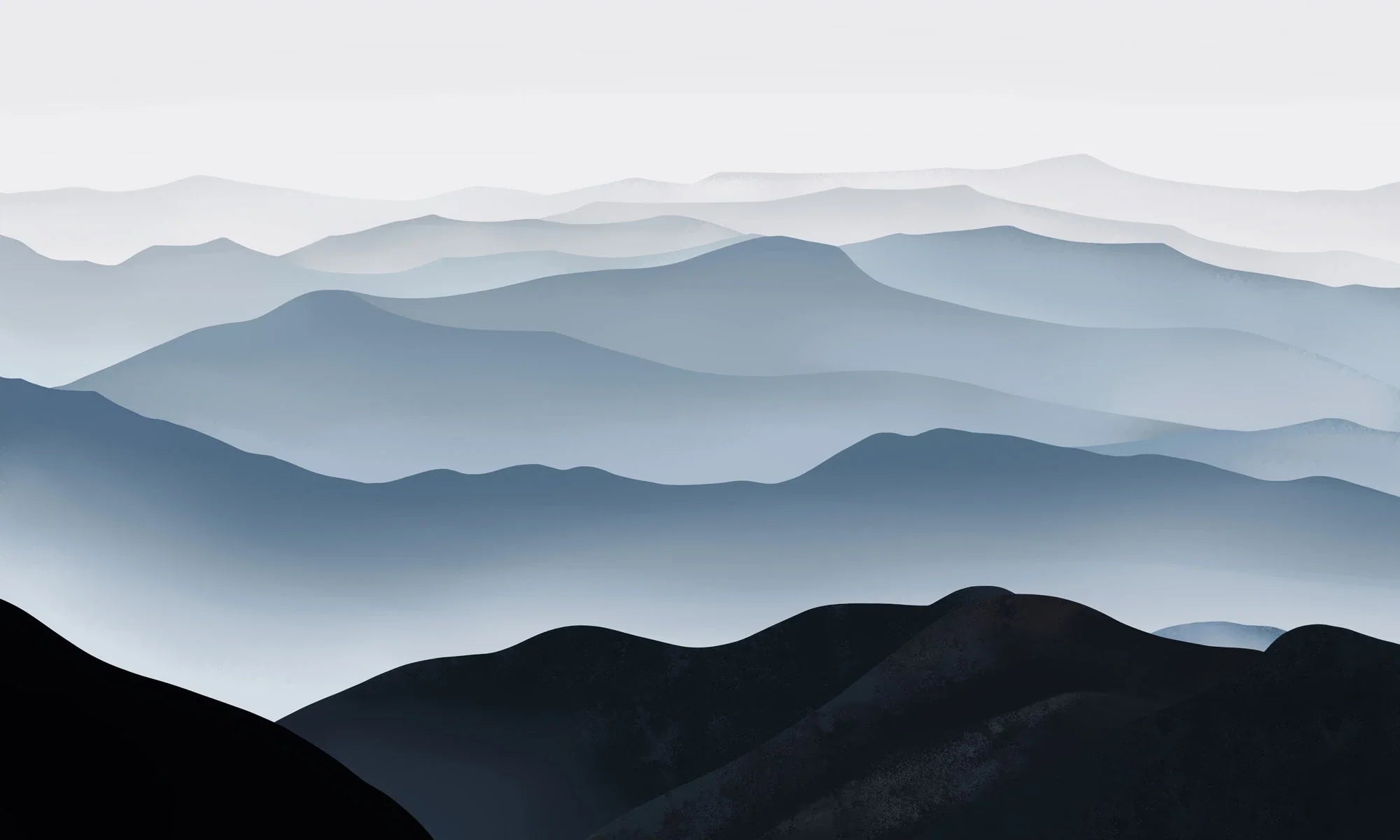 Elevate your space with our Misty Mountain Range Scenic Wallpaper, perfect for creating a serene and expansive atmosphere. The gradient of blues and greys captures the essence of a tranquil mountain landscape, transforming your room into a peaceful retreat.