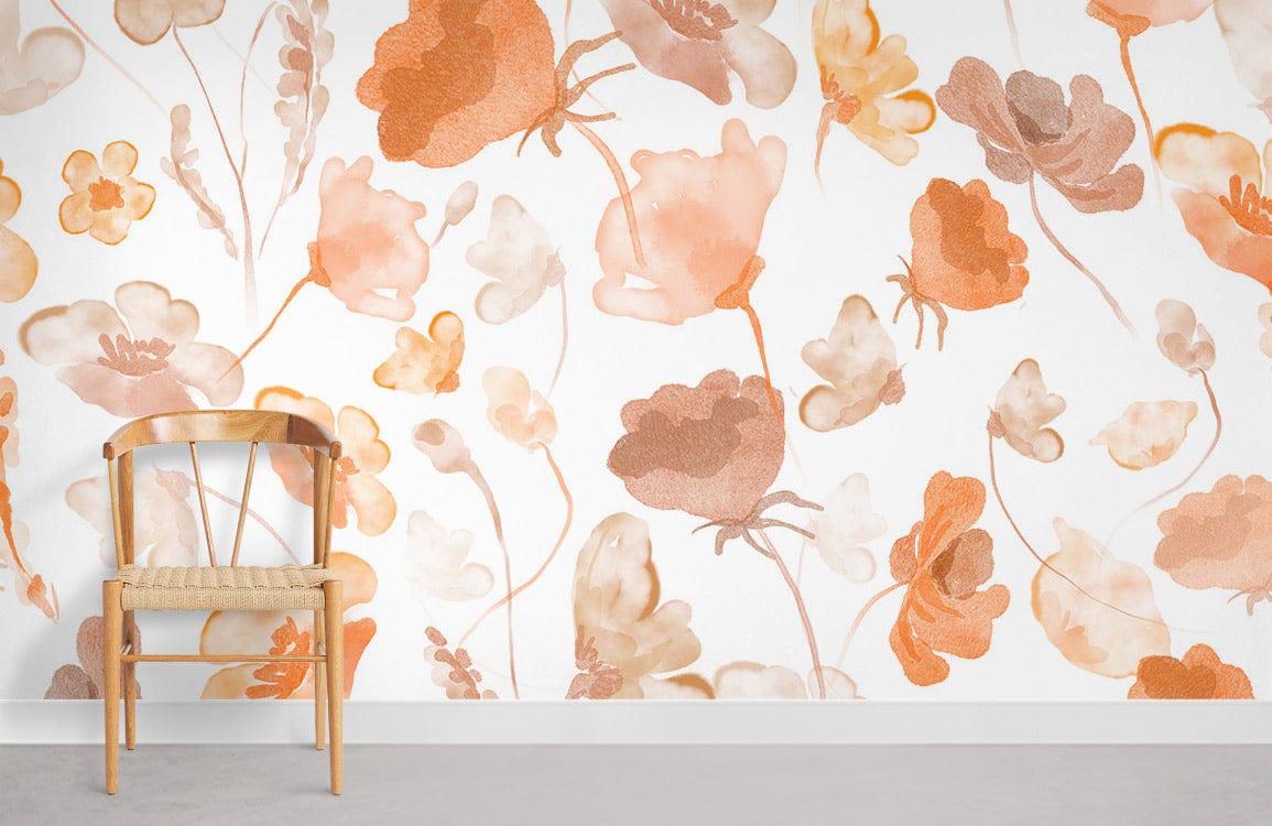 Transform any space with our Elegant Orange Watercolor Floral Wallpaper. This delicate design features a lush pattern of soft orange and beige flowers, adding a touch of nature's serenity to your interiors. Perfect for creating a tranquil retreat in your home.