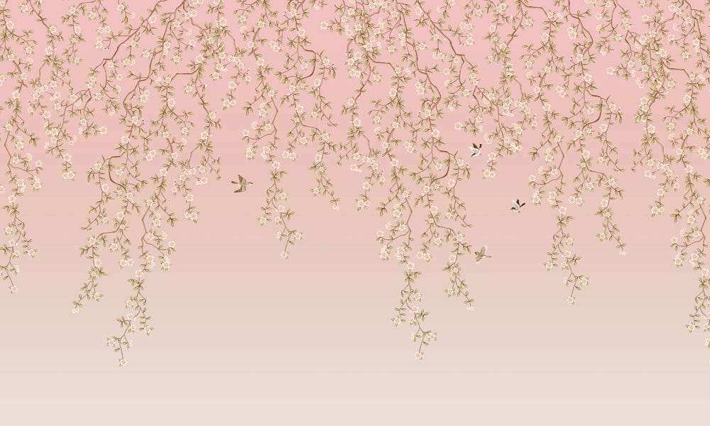Bring a touch of delicate beauty to your space with our Pink Blossom Floral Wallpaper. Perfect for creating a serene and romantic ambiance in any room, its intricate flower and butterfly designs add a whimsical yet elegant element.