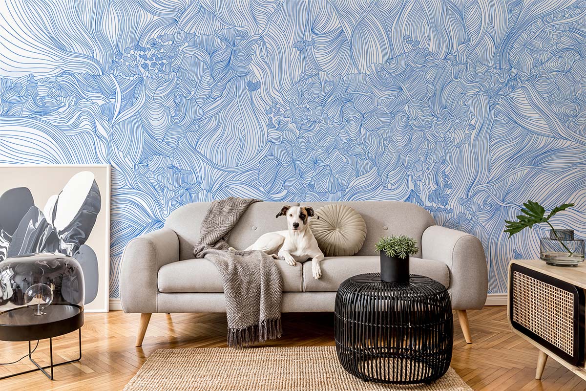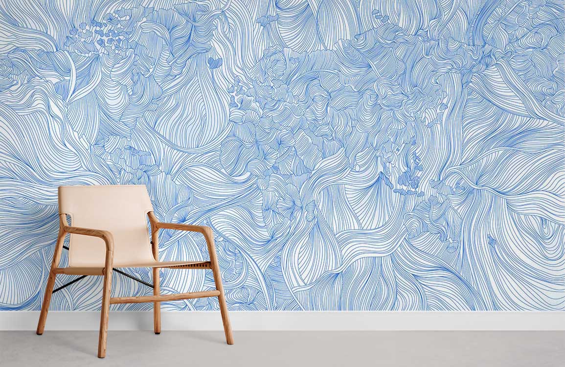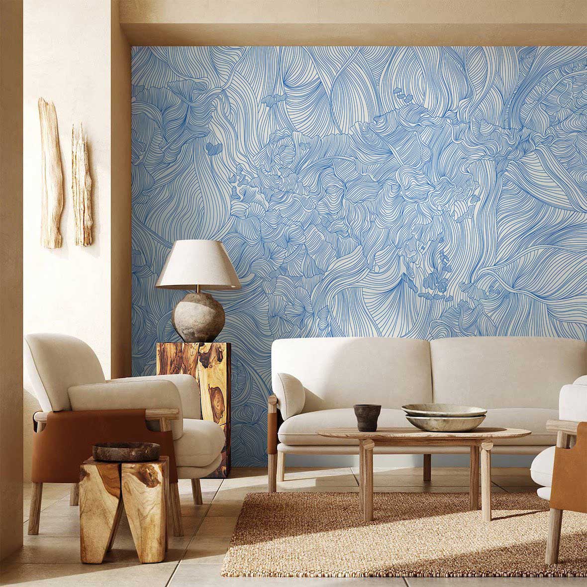 Upgrade your space with our Abstract Blue Floral Wallpaper, featuring an intricate floral pattern set against a soothing blue background. Perfect for adding a touch of elegance and tranquility to any room.