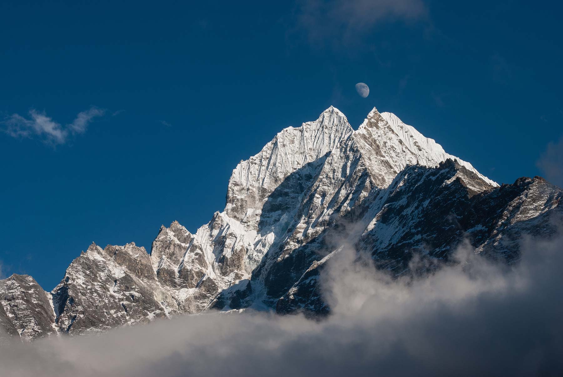 Elevate your space with this Majestic Mountain Peaks Wallpaper capturing the serene beauty of towering snow-capped mountains against a clear blue sky. Perfect for creating a tranquil and inspiring ambiance in any room.