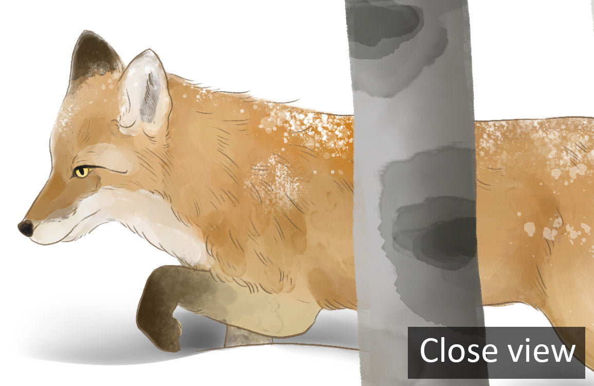 Create a serene escape with our Winter Birch Forest Wallpaper Mural. Featuring a delicate snow-covered landscape and gentle birch trees, this mural brings the peacefulness of a winter wood into your home. A solitary fox adds a touch of wildlife charm.