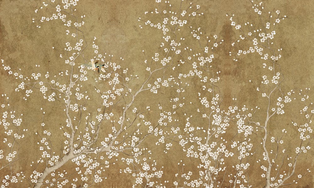 Evoke a sense of timeless elegance with our Vintage Botanical Blossom Wallpaper. Perfect for adding a touch of nature's beauty, its delicately detailed white blossoms stand out against a rich beige backdrop, creating a serene atmosphere in any space.