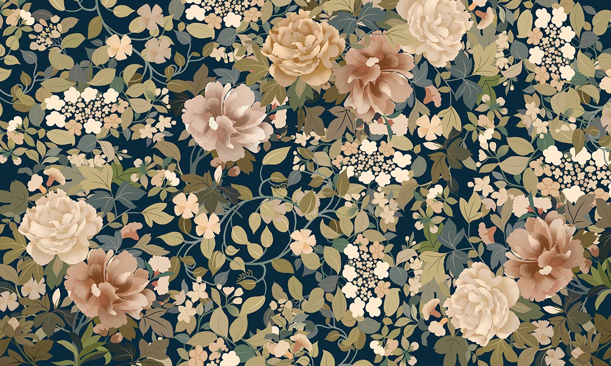Transform your space with our Elegant Navy Vintage Floral Wallpaper, featuring a timeless floral design that adds a touch of sophistication to any room. Ideal for creating a charming vintage ambiance, the wallpaper's navy background with soft beige and green accents brings tranquility and warmth to your living environment.