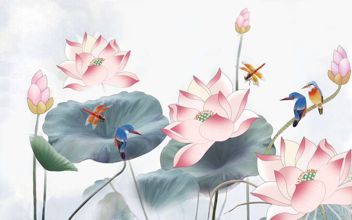 Transform your space with our Elegant Lotus Bird Chinoiserie Wallpaper, featuring delicate pink lotuses, graceful birds, and lush greenery. This serene design adds a touch of nature's beauty and tranquility to any room, perfect for creating a peaceful retreat.