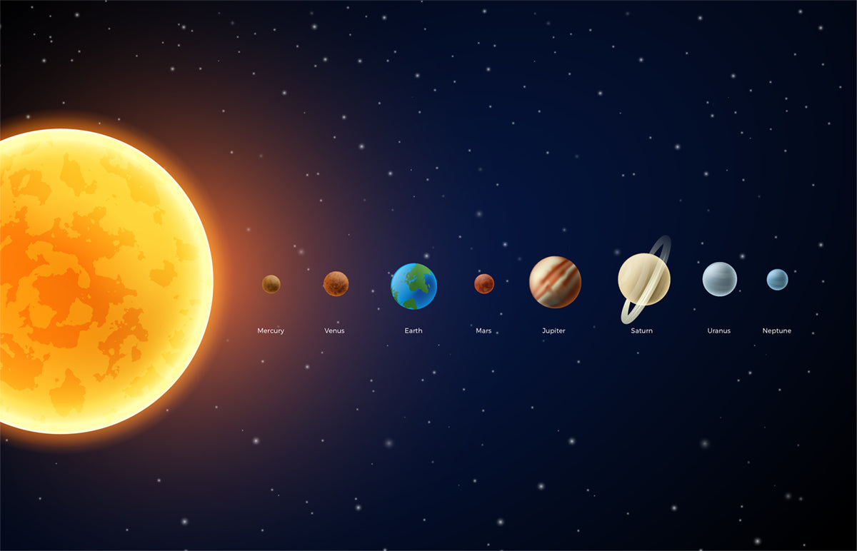 Transform your room with this vibrant Solar System wallpaper, featuring a detailed illustration of planets in orbit. Perfect for inspiring wonder and making a statement in any space-themed bedroom, office, or children's room.