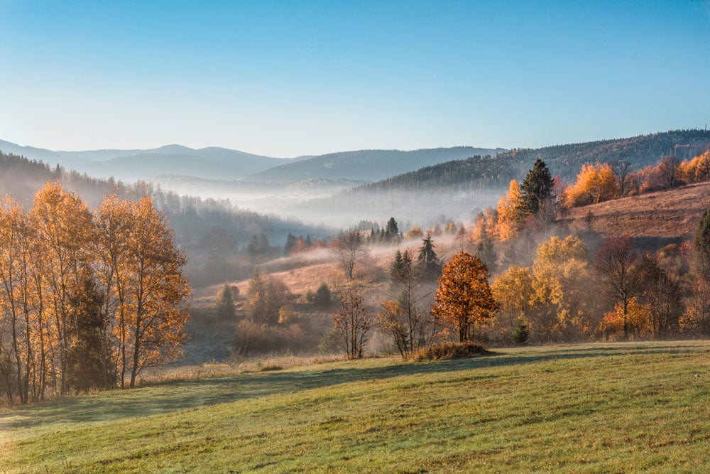 Elevate your space with this Autumnal Forest Landscape Wall Mural, perfect for bringing a touch of nature's tranquility indoors. The warm hues and misty forest design create a serene backdrop for any room.