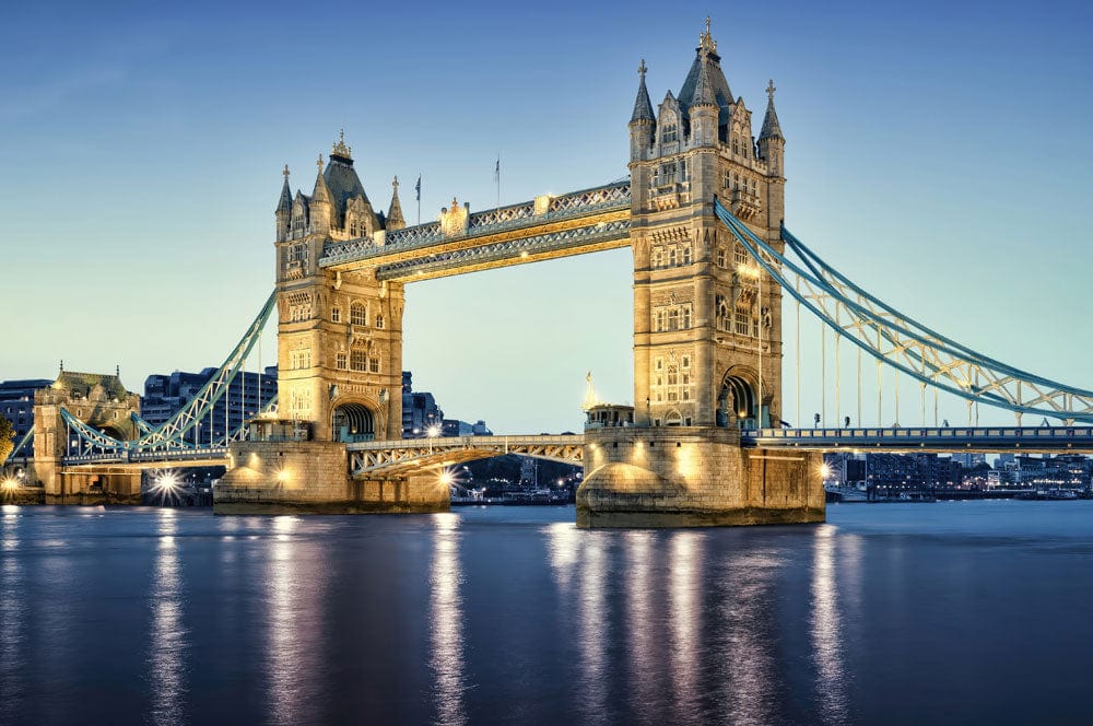 Immerse your space in the captivating charm of twilight with our Majestic Tower Bridge Evening Wallpaper, showcasing the iconic London landmark in stunning detail, perfect for creating a serene and sophisticated ambiance in any room.
