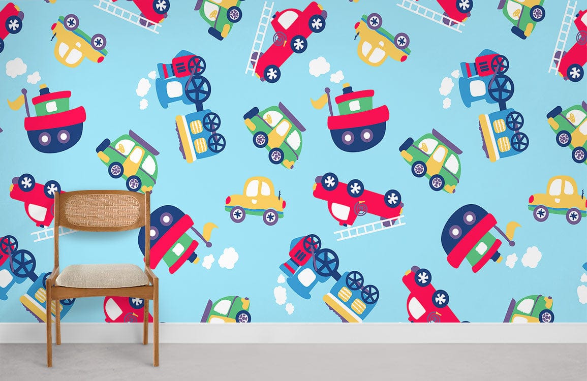 Transform your child's room with this playful and colorful transportation-themed wallpaper. Featuring whimsical illustrations of cars, planes, and boats, it's perfect for sparking creative play and dreams of adventure. Durable and easy to clean, it's ideal for nurseries, playrooms, and bedrooms.