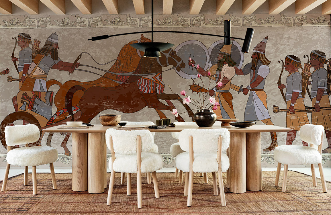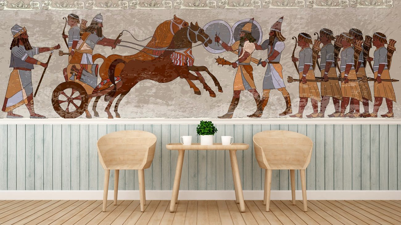 Transform your space with our Ancient Egyptian Chariot Wall Mural, perfect for adding a touch of history and elegance. The detailed depiction of pharaohs and warriors in battle is ideal for themed rooms or educational spaces.