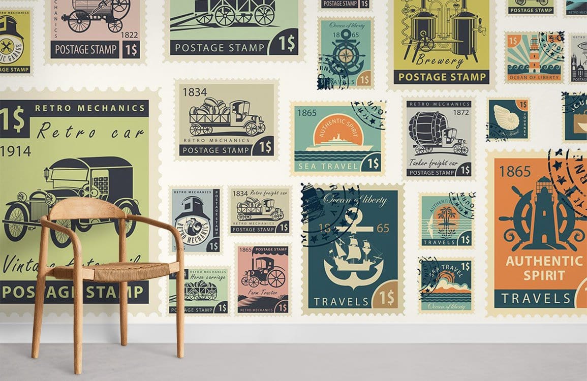 Elevate your space with this unique Vintage Stamp Collage wallpaper, perfect for adding a touch of retro charm. Its rich pastel palette and classic postal design elements make it ideal for creating a statement wall that's both nostalgic and stylish.