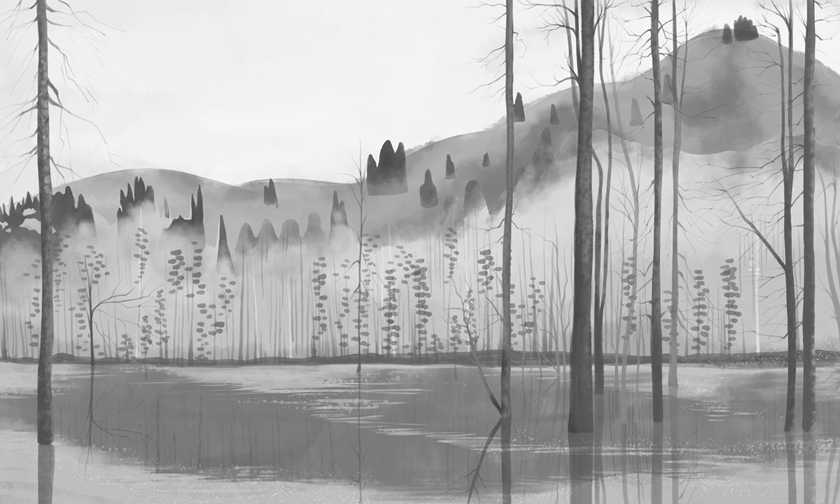 Elevate your space with our serene Misty Forest Landscape Monochrome Wallpaper. This atmospheric design captures the tranquil essence of a foggy woodland, bringing a peaceful ambiance to any room. Perfect for creating a statement wall or a sophisticated backdrop.