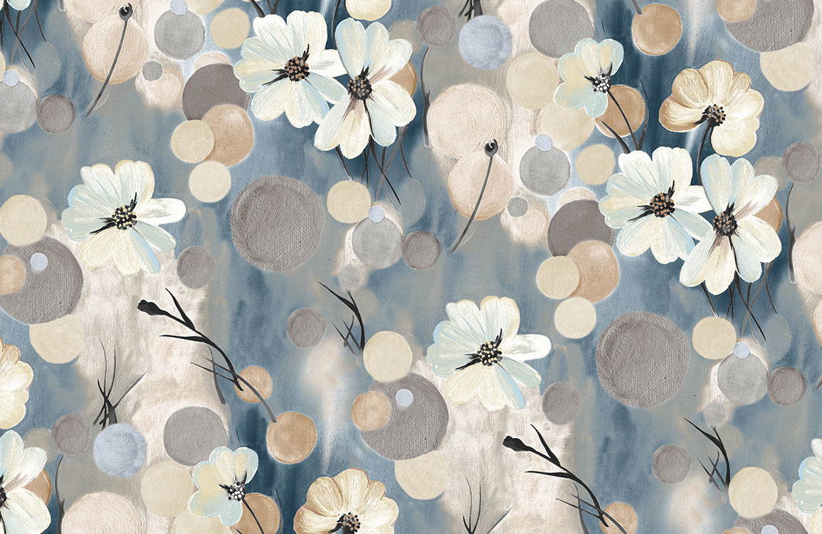 Elevate your space with our Blue Abstract Floral Botanical Wallpaper, perfect for creating a serene and inviting atmosphere. Its delicate floral patterns in soft blue hues are complemented by tan and grey accents, offering a modern touch to any room.