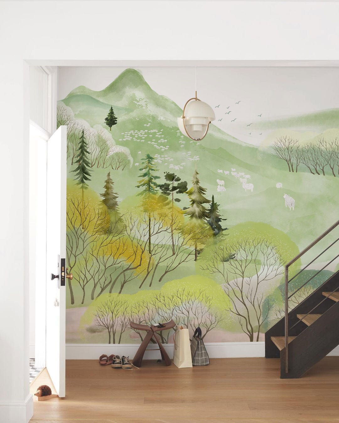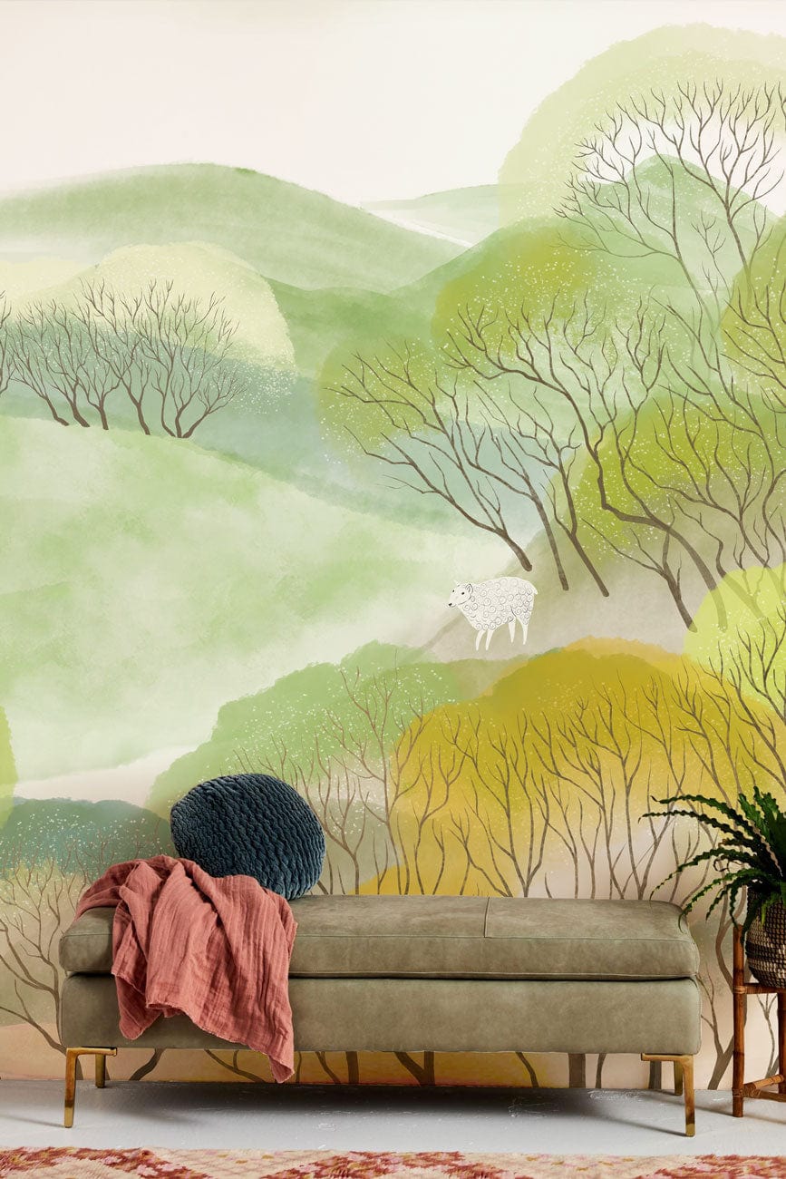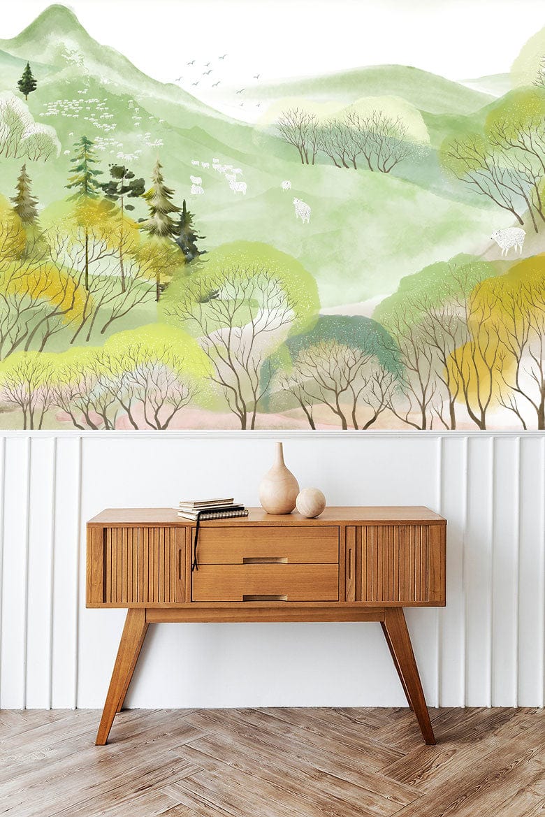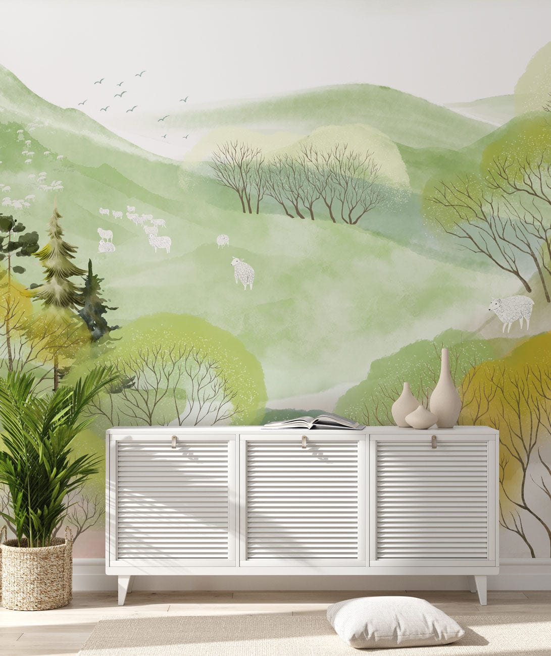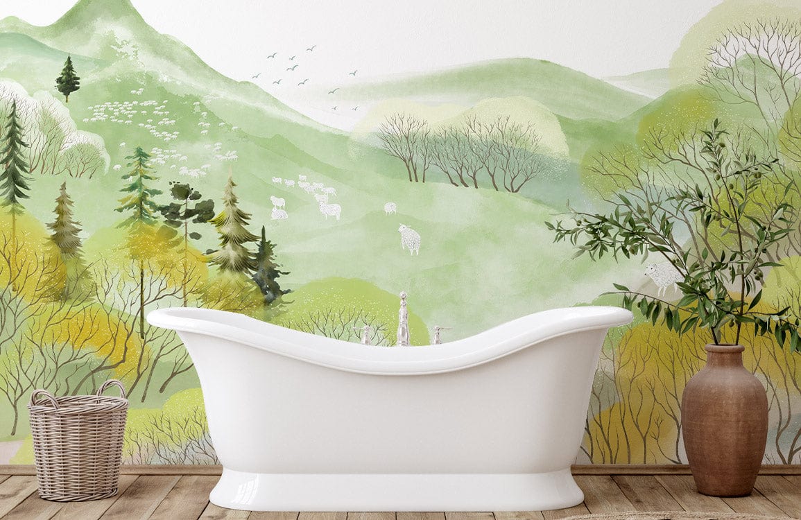 Embrace tranquility with our Pastoral Landscape Watercolor Wallpaper, perfect for creating a serene retreat. Ideal for bedrooms or living areas, this wallpaper features a beautiful, soothing landscape with subtle color transitions that evoke nature's calming essence.