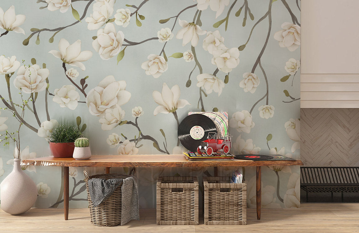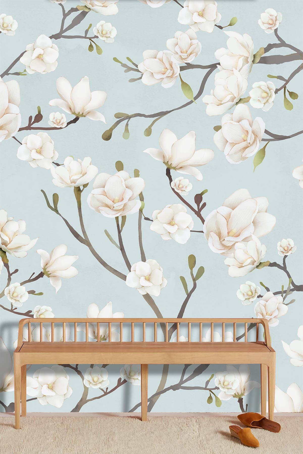 Transform your space with our Elegant Magnolia Floral Wallpaper, featuring delicate blooms and branches for a touch of nature. Perfect for creating a serene ambiance in bedrooms and living rooms, this high-quality wallpaper ensures a fresh, timeless look.